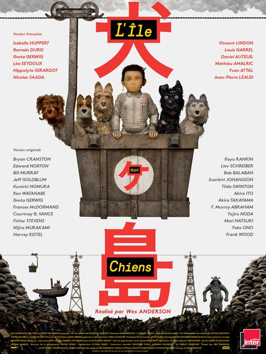 Bill Murray, Edward Norton, Jeff Goldblum, Liev Schreiber, Greta Gerwig, Scarlett Johanssonn, Harvey Keitel, Frances McDormand, Francis Murray Abraham, Tilda Swinton, Bryan Cranston (de la série « Breaking Bad »), Bob Balaban, Anjelica Huston, le jeune Koyu Rankin, Kunichi Nomura, Akira Ito, Yoko Ono (pour la voix d’un personnage du même nom!), Roman Coppola (avec qui il a co-écrit le film).