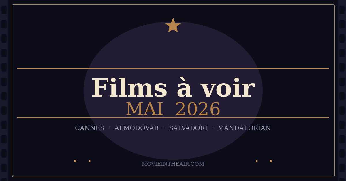 Le festival commence le 12 mai – et le mois entier en est marqué, avec des sorties qui semblent toutes vouloir exister en regard du grand rendez-vous de la Croisette. Almodóvar en compétition, Salvadori en film d’ouverture, Javier Bardem et Marina Foïs dans un drame espagnol sobre et fort. Le cinéma français, lui, explore ses propres tensions – les années 2020 vues depuis un plateau de théâtre, ou depuis un collège de banlieue parisienne le 16 octobre 2020.