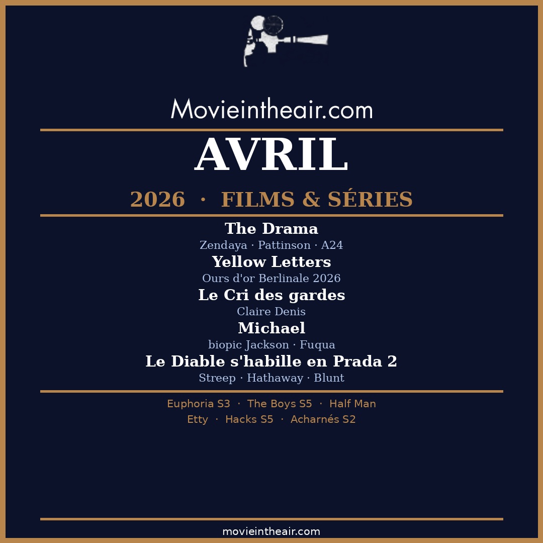 Avril s’ouvre avec le film le plus attendu du printemps et se referme sur la suite la plus improbable de l’année. Entre les deux, de l’auteur pur, de la nostalgie des années 80, un biopic événement et quelques pépites de festival. Et le 9 avril, la sélection officielle de Cannes 2026 sera dévoilée.